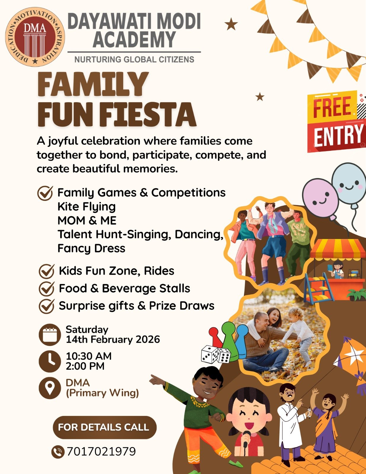 Dayawati Modi Academy warmly invites all parents and students to a vibrant and joy-filled celebration — Family Fun Fiesta, an event designed to bring families together through fun, laughter, creativity, and bonding.